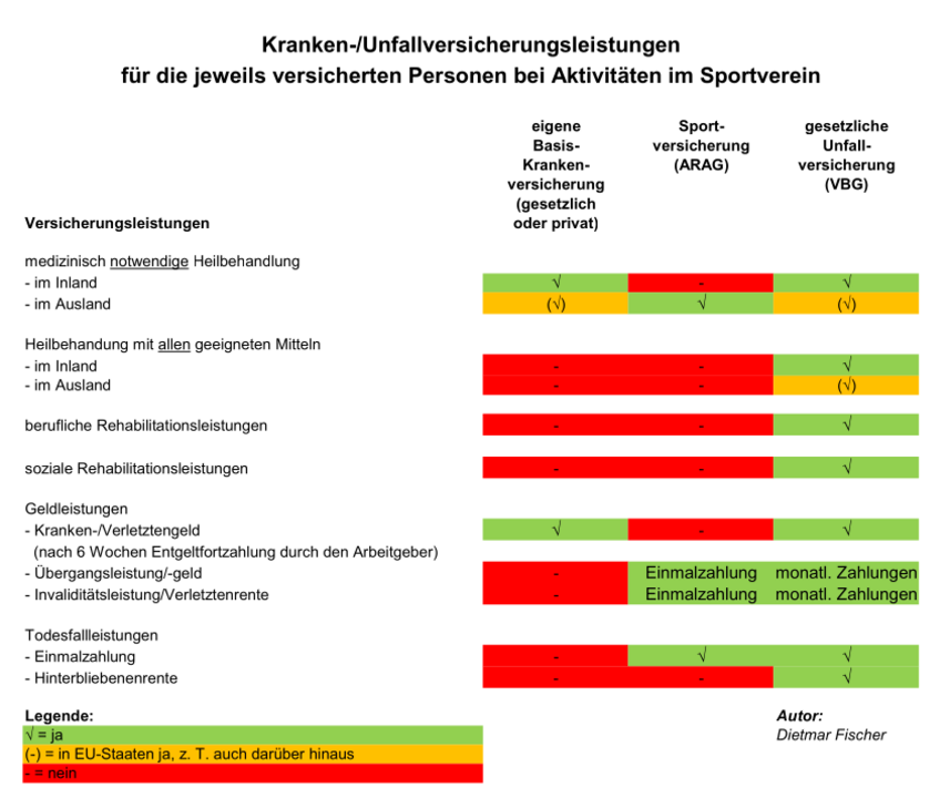 Welche Versicherung bietet bei einem Unfall im Sportverein für welche Personengruppen Versicherungsschutz und entsprechende Leistungen?
